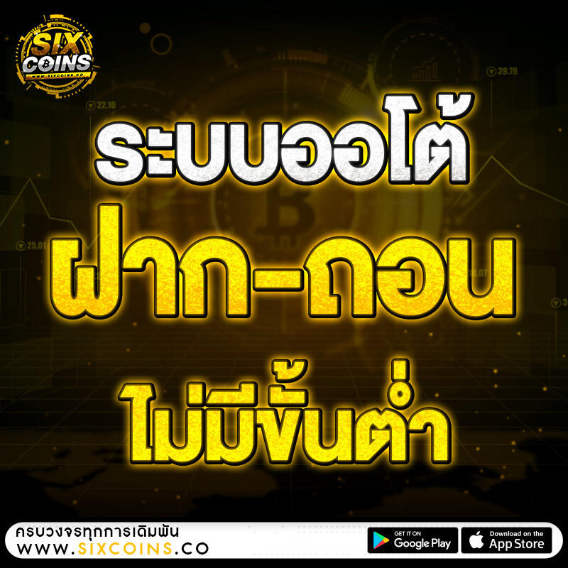 SIXCOINS กลายเป็นระบบฝากและถอนอัตโนมัติที่ดีที่สุดและเร็วที่สุดในประเทศไทยระบบอัตโนมัติที่มีความเสถียรสูงและมีการพัฒนาอยู่เสมอให้ผู้เล่นได้สัมผัส